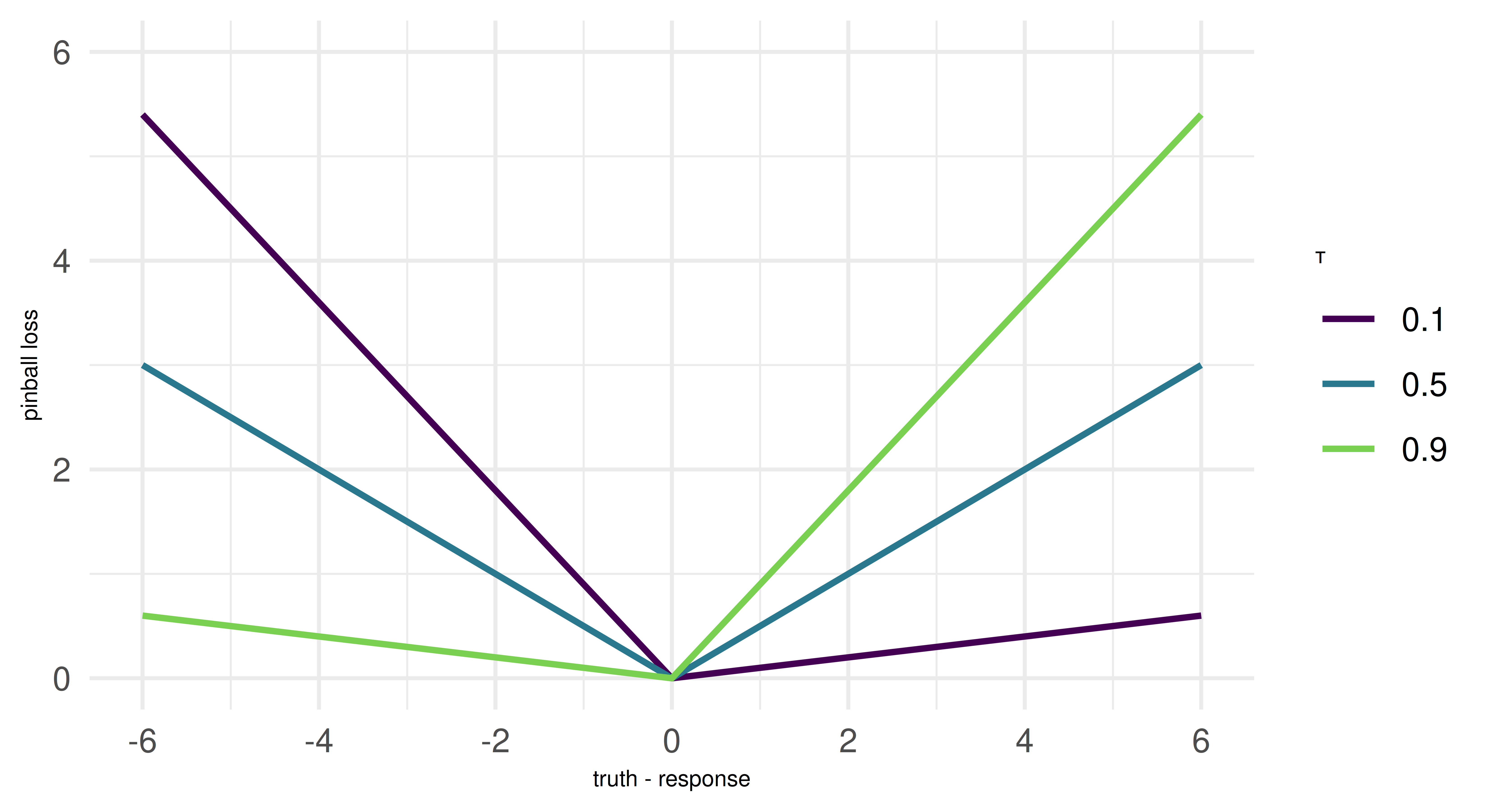 But note: While many ML models based on empirical risk minimization use the pinball loss for estimating quantiles, some model classes might work differently. However, since the underlying training procedure of a model is external to mlr3, we are more concerned with resampling and evaluating quantile regression models. This works in exactly the same manner as for other tasks. Because we provide only a brief overview of quantile regression, we recommend Yu, Lu, and Stander (2003) if you are interested in a methodological introduction to the topic and Koenker (2005) for a more expansive treatment of quantile regression.